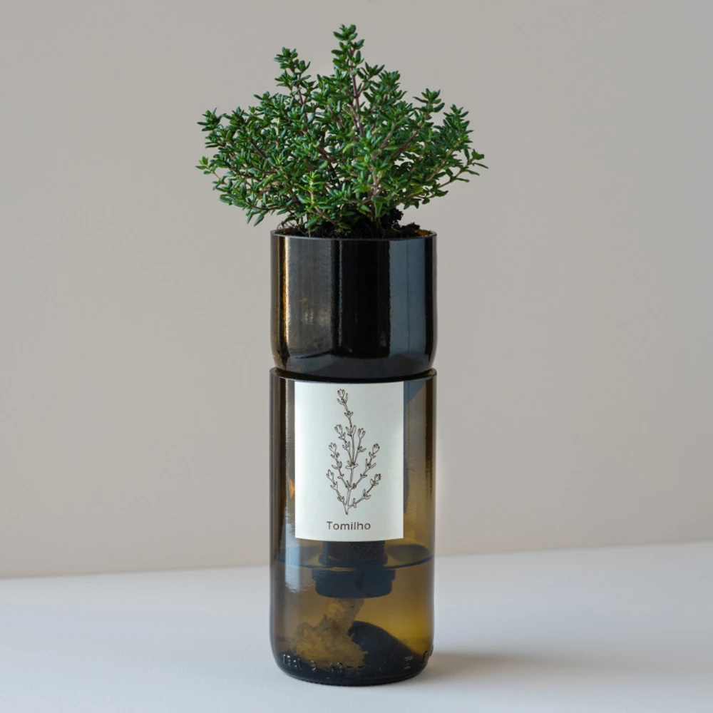 Découvrez l’arrosage automatique d’intérieur grâce à ce kit d’irrigation ! Graines biologiques de basilic prêt à pousser ne vous préoccupez plus de vos plantes, cette bouteille de vin design est conçue pour un arrosage goutte à goutte. Bouteille de vin recyclée. Coton et substrat organique. Diamètre x hauteur : 7cm x 20 cm germination : 2 semaines
