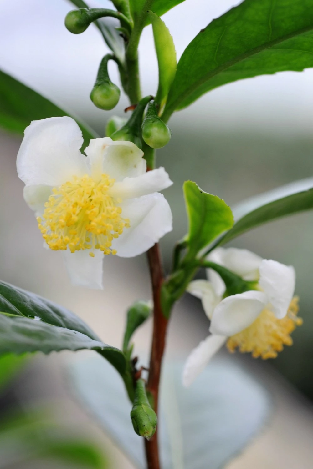 le saviez-vous c’est à partir du camélia sinensis que l’on obtient le thé vert ! En chine, son pays d’origine, le camélia sinensis est cultivé pour la production de thé. Plusieurs fois dans l’année, les jeunes pousses sont prélevées. On ne voit donc jamais de fleurs sur les théiers destinés à la production de thé.